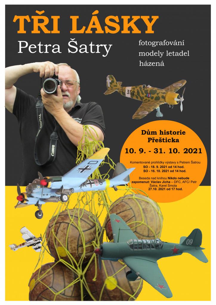 Prezentace tří celoživotních zálib Petra Šatry: fotografování, stavba modelů letadel, národní házená.